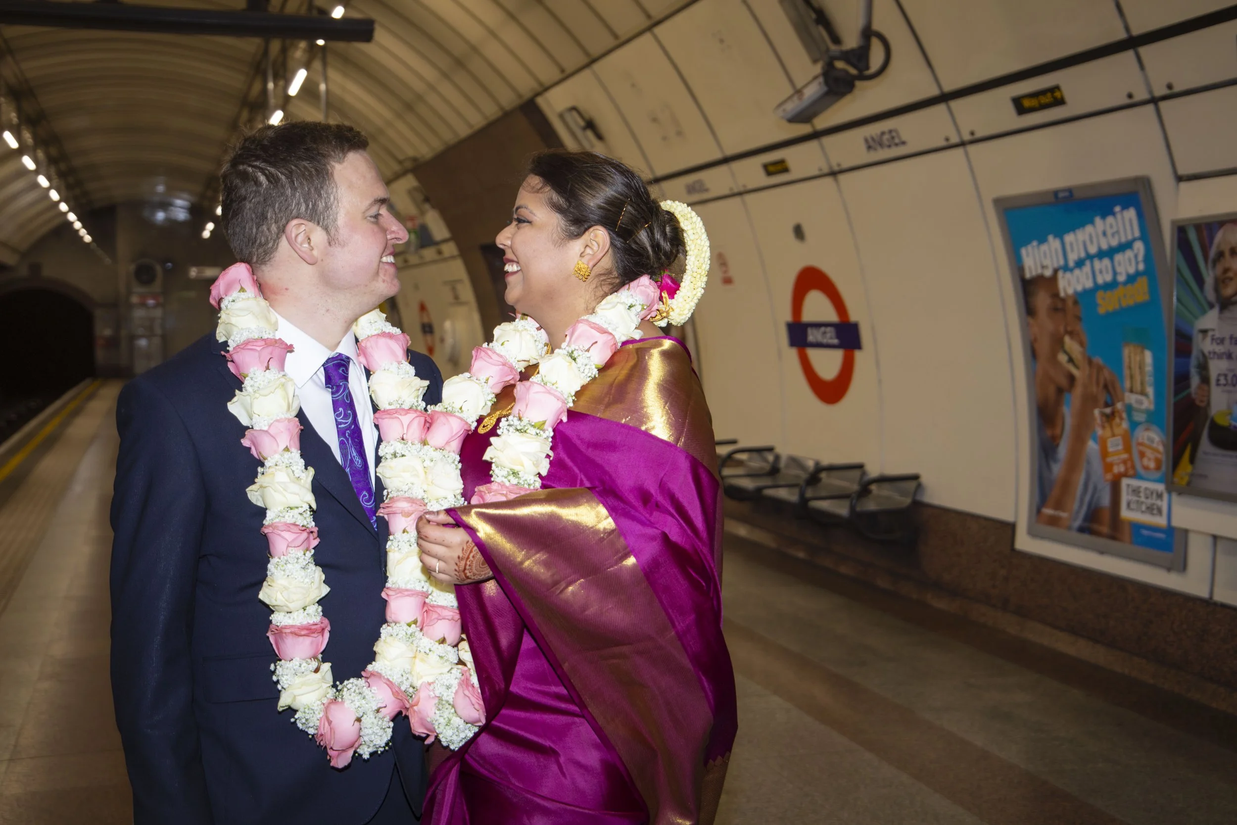 Jack and Isha wanted digital and analogue photography that focused on candid, emotional moments of their day. The non-traditional couple are self proclaimed ’TFL nerds’, and I was more than happy to photograph their first Tube journey as newlyweds (at rush hour on a Saturday)!